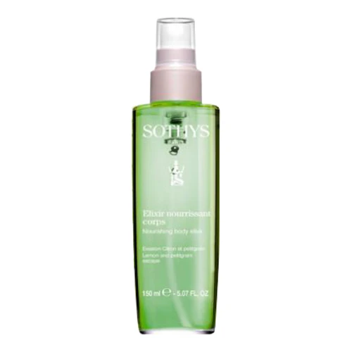 Sothys Lemon and Petitgrain Escape Nourishing Body Elixir richly moisturize and replenishes skin, while providing a veil of antioxidant protection. Absorbs quickly, leaving behind only a silky soft feeling with no residue or shine.